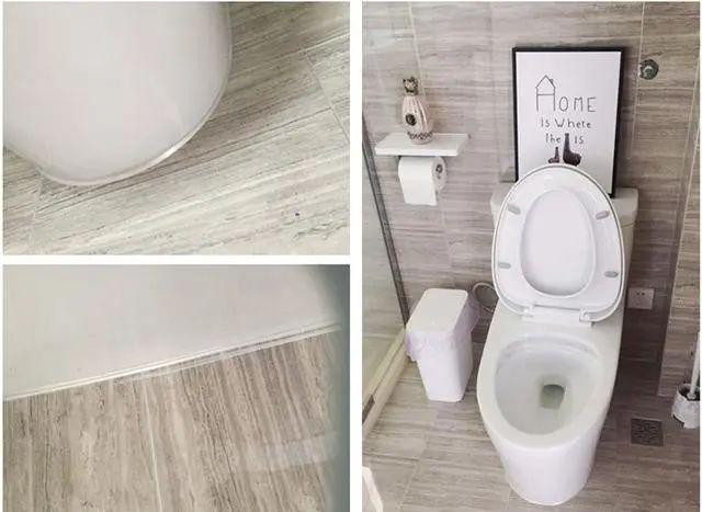 马桶底座与地面缝隙处一般是用的玻璃胶,而玻璃胶使用一段时间就会发霉。不如用瓷胶,价格便宜还不会霉。相比玻璃胶还需要反复除霉的情况,也省事划算很多。